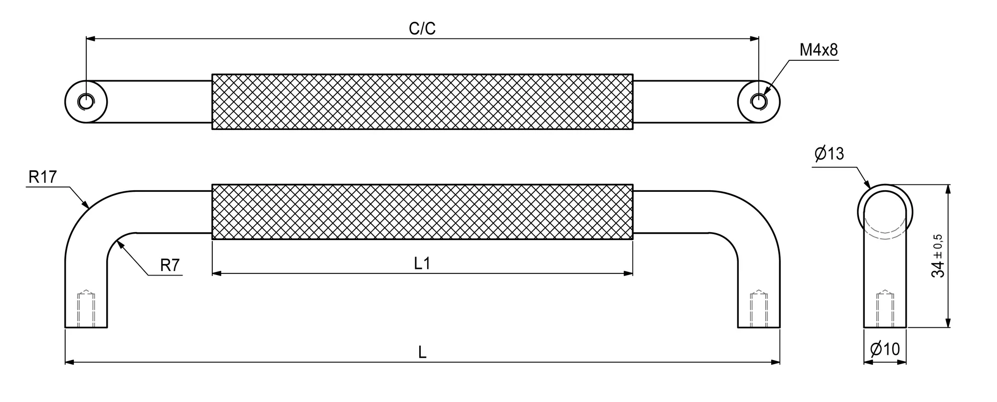 Uchwyt meblowy typ U prążkowany fi 13x34 antyczny brąz 160 mm